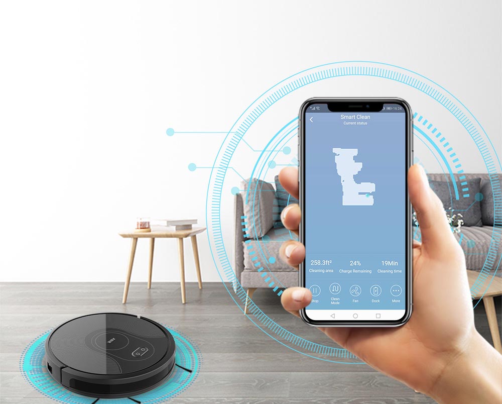 La ihub-Z5 es una aspiradora robot de altas prestaciones, pisos limpios con solo presionar un botón. La potencia de succión y sensores de navegación innovadores, tecnología resistente a los atascos le permiten limpiar tu casa con mayor eficiencia.